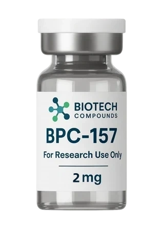 BPC-157 is a synthetic 15-amino acid peptide fragment derived from human gastric juice protein, available as a lyophilized powder for laboratory research.