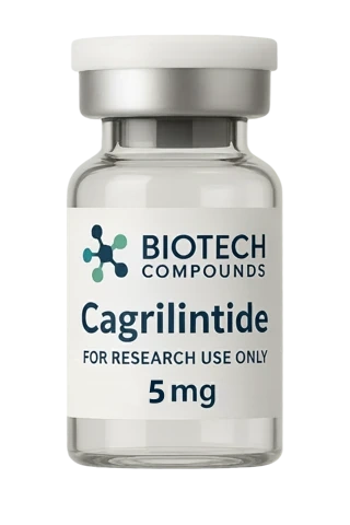 Cagrilintide is a synthetic 39-amino acid acylated peptide analog classified as a dual amylin and calcitonin receptor agonist (DACRA), available as a lyophilized powder for laboratory research.