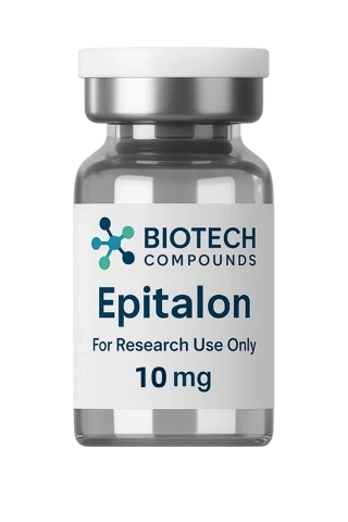 Epitalon is a synthetic tetrapeptide with the sequence Ala-Glu-Asp-Gly, available as a lyophilized powder for laboratory research.