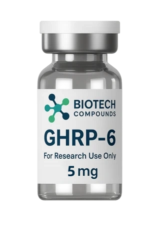 GHRP-6 is a synthetic hexapeptide classified as a growth hormone secretagogue and ghrelin receptor agonist, available as a lyophilized powder for laboratory research.