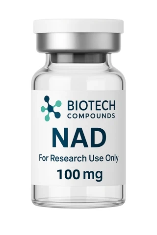 NAD+ (Nicotinamide Adenine Dinucleotide) is a dinucleotide coenzyme, available as a lyophilized powder for laboratory research.